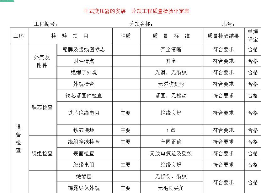 干式變壓器是一種無(wú)油工作的變壓器。普通干式變壓器的安裝更為重要。干式變壓器的安裝問(wèn)題需要引起更多關(guān)注。一般來(lái)說(shuō),應(yīng)該正確注意。干式變壓器安裝方法不斷提高安裝水平和容量,使干式變壓器更安全,更高效。對(duì)于干式變壓器安裝后還要進(jìn)行評(píng)估,普通公司如何評(píng)估安裝后?以下是常見(jiàn)的表格供您參考: