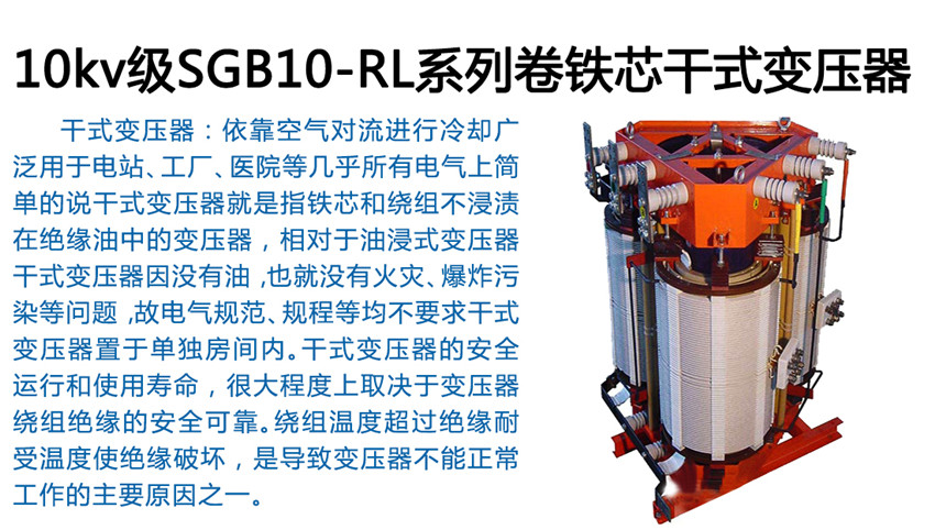 產(chǎn)品型式為H級(jí)、戶內(nèi)、三相、雙繞組、非包封型(SGB)節(jié)能型干式變壓器